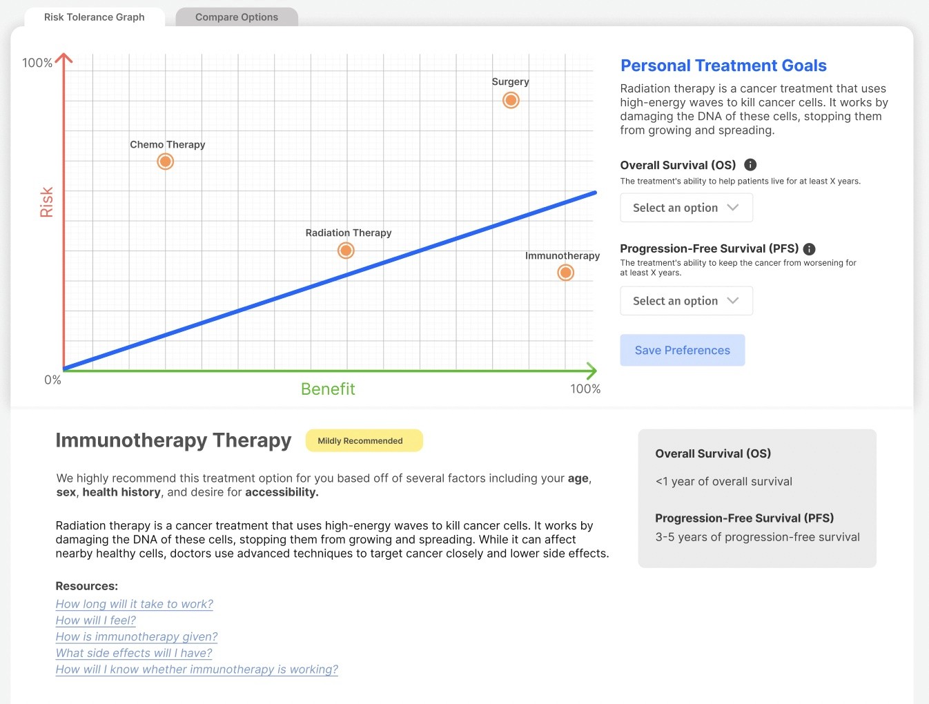 This project had one of the steepest learning curves I've experienced. We were designing for oncology treatment decisions with no medical background, working alongside researchers and clinicians who were deep experts in their field. They didn't always know what we didn't know, and we didn't always know what to ask. Early on, that gap cost us time as we designed around assumptions that later needed correcting.