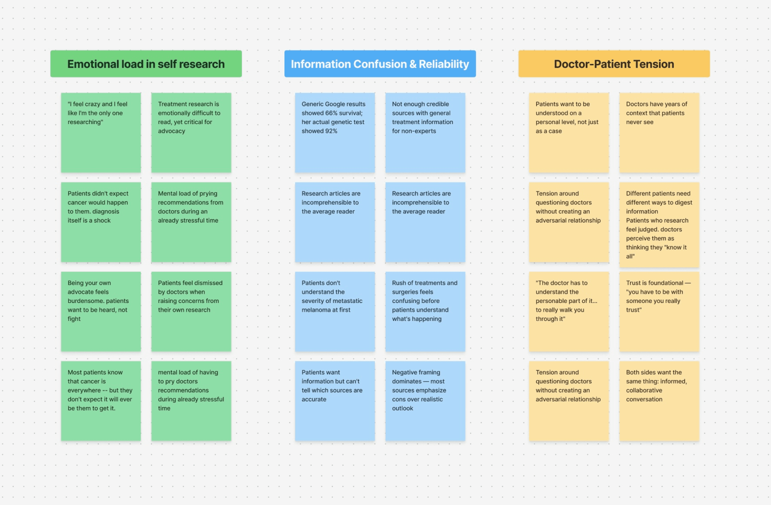 We couldn't interview cancer patients directly. No IRB approval or clinical access. So we designed a secondary research strategy that could build empathy without traditional user interviews.