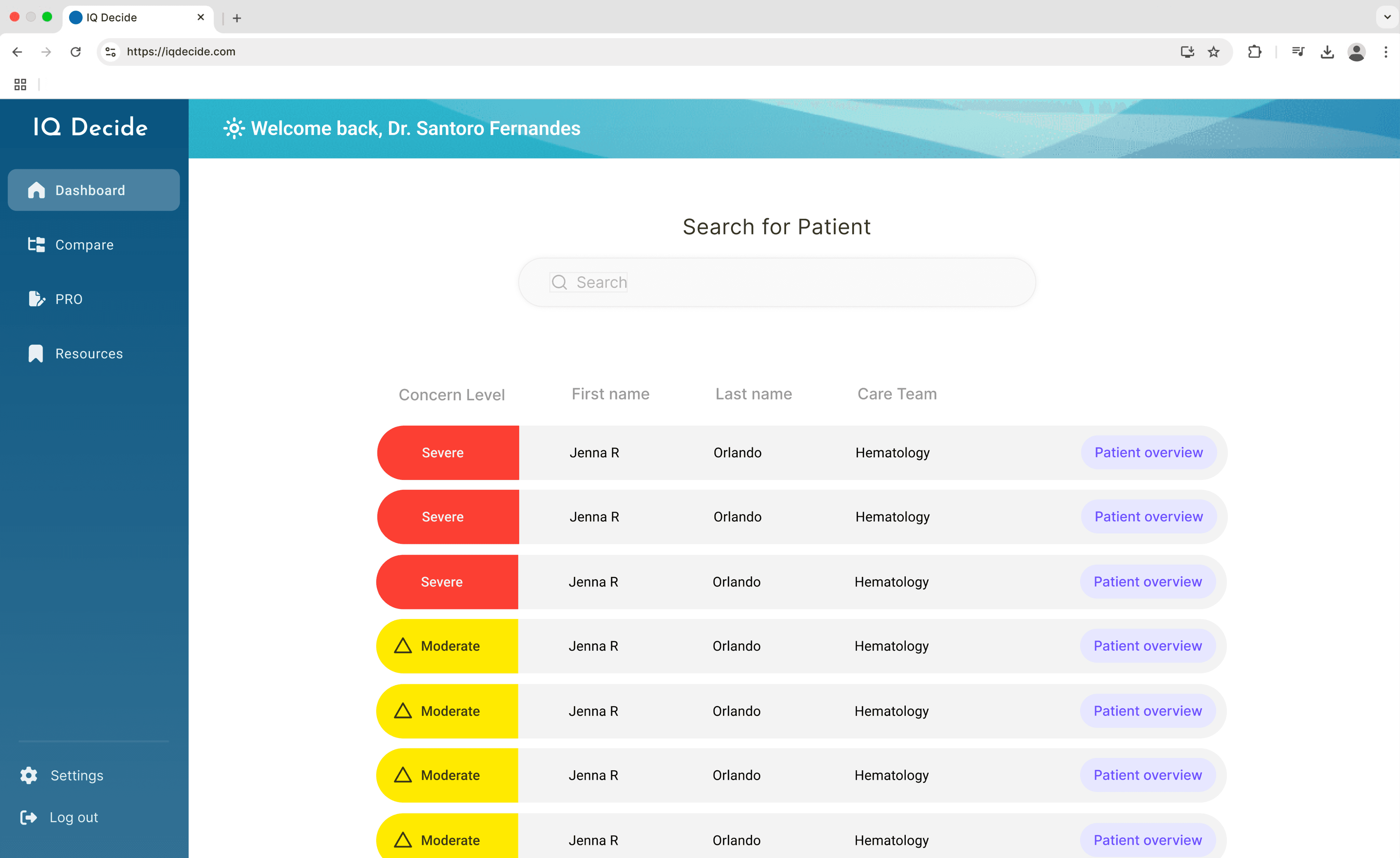 The provider side needed to give oncologists efficient access to their patients' data, surface what's changed and what's concerning, and support in-appointment conversations.