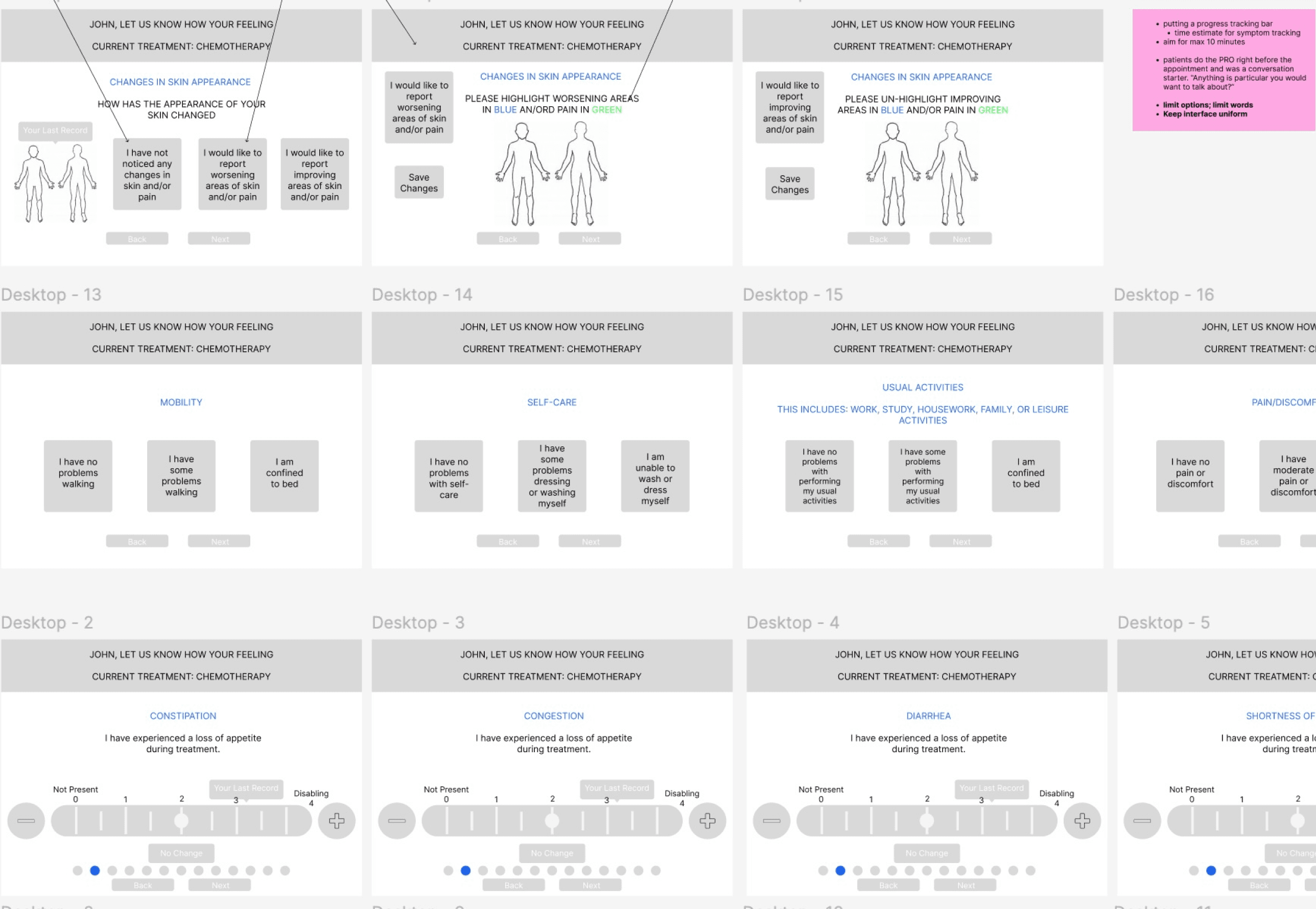Tracking symptoms leads to better treatment outcomes. The PRO page needed to be quick, low-friction, and useful to both the patient and their care team.